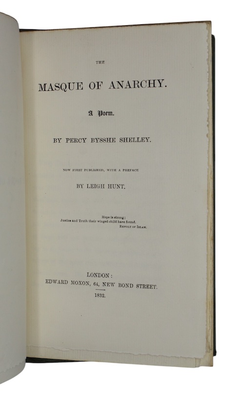 A limited facsimile reprint of Shelley's political long poem The Masque of Anarchy, published for the Shelley Society. Written in 1819, and first published in 1832, Shelley's famous treatise on non-violent resistance was prompted by the Peterloo Massacre.