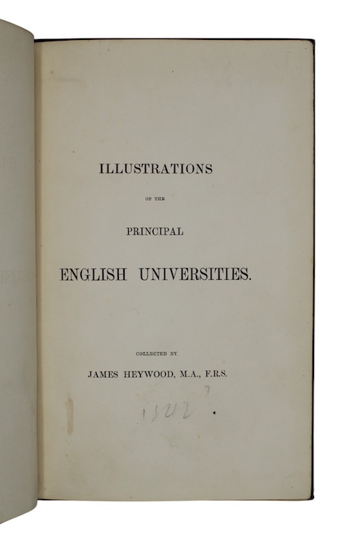 The sole edition of a collection of attractive plates depicting views of Oxford and Cambridge colleges and founders of the universities, gathered from various sources and issued privately by the collector, philanthropist and social reformer, James Heywood (1810-1897).