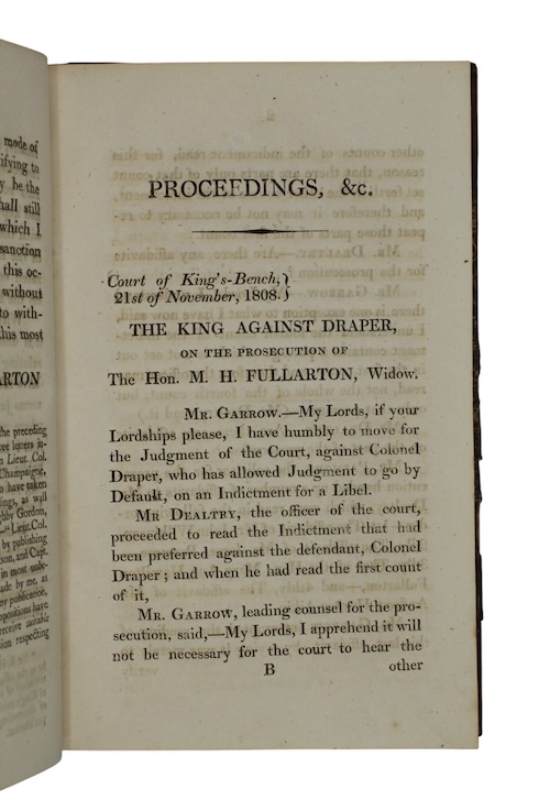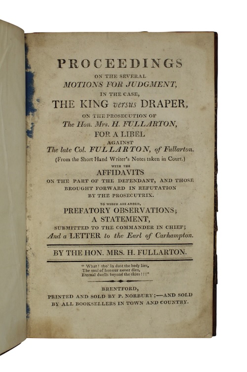 Proceedings on the several motions for judgment in the case, the king versus draper, on the prosecution of The Hon. Mrs. h. fullarton, for a libel against The late Col. fullarton, of Fullarton...