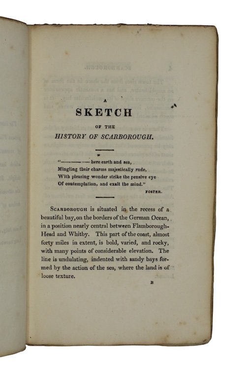 The second located copy of the sole edition, in original state, of 'a few sketches of romantic and picturesque objects' in Scarborough, compiled by the determined and idiosyncratic bookseller and antiquary John Cole (1792- 1848) for the use of tourists.