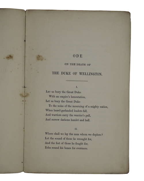 The first edition, in original unsophisticated state, of Tennyson's impassioned elegy for the Duke of Wellington, published on the day of his funeral, 18th November 1852, and notable as the first independent publication issued by Tennyson following his appointment as Poet Laureate.