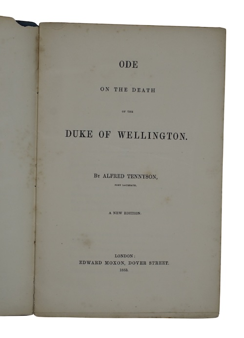 A revised edition (with the addition of a further twenty-nine lines) of Tennyson's impassioned elegy for the Duke of Wellington, initially published on the day of his funeral, 18th November 1852, and notable as the first independent publication issued by Tennyson following his appointment as Poet Laureate.