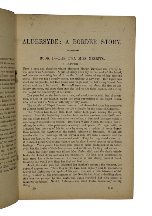 An abridged edition of the celebrated debut novel of Annie Shepherd Swan (1859-1943), Scottish journalist and fiction writer, who also wrote under the names David Lyall and Mrs Burnett Smith. The romance, set in the Scottish Borders, earned her an autographed letter of recognition from Alfred, Lord Tennyson. Her work was so affecting that British Prime Minister William Ewart Gladstone wrote to The Scotsman upon reading the novel, declaring it 'beautiful as a work of art' for its 'truly living sketches of Scottish character' .