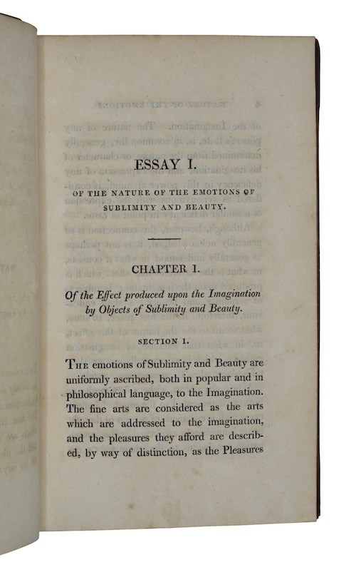 The second edition of a collection of musings on 'taste' by Scottish essayist and clergyman Archibald Alison (1757 – 1839). As a follower of the Associationist School, in particular, the work of its founder, David Hartley, Alison's writing on aesthetics was heavily influenced by the principle of the association of ideas. This volume is dedicated to his lifelong friend, Scottish mathematician and philosopher Prof Dugald Stewart (1753 - 1828), one of the leading figures of the Scottish enlightenment.