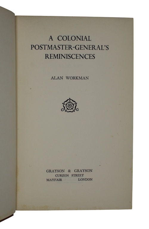 The sole edition of Alan workman's memoir detailing postal and telegraph work in North and South Nigeria, Kenya, Uganda, and Trinidad.