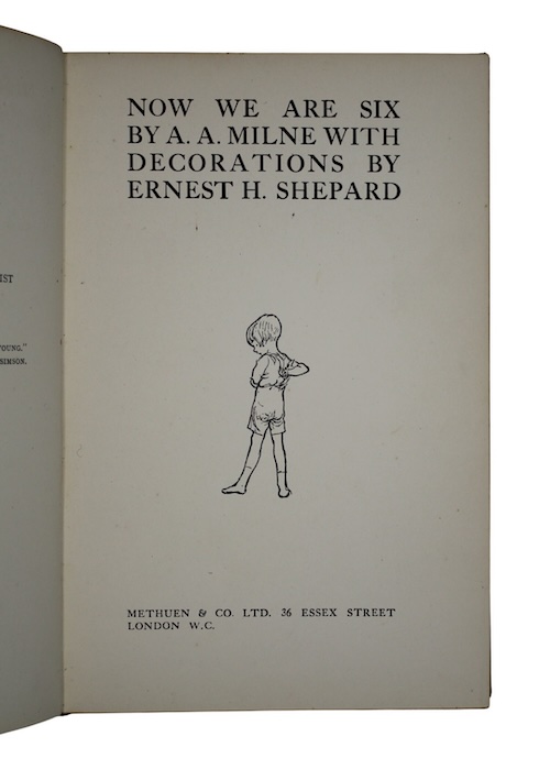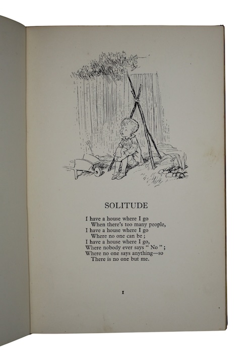 The first edition, deluxe issue (issued concurrently with the trade issue), of Milne's second book of poetry for children; one of 5,000 specially bound copies, 1,500 in green sheep, as here, and 1,500 in blue and 2,000 in red.