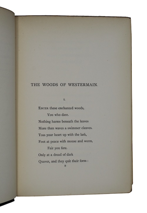 ix, 181pp, [3]. With an initial leaf of publisher's advertisements, half-title and a terminal leaf of meter explanations for three poems. Contemporary navy paper boards, lettered in gilt to spine. Lightly rubbed and marked, with chipping to head and foot of spine. Contemporary inked ownership inscription of H.P. Addleshaw, Sept. 2nd 1889, to half-title. Small manuscript addition to terminal leaf of meter notation. Spotting to initial and terminal leaves.