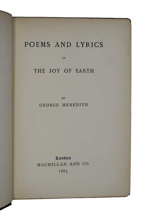 The first edition of George Meredith's (1828-1909) return to poetic endeavours in the 1880s, including substantial new compositions, such as 'Melampus', 'The Day of the Daughter of Hades', and 'Earth and Man', and several poems previously published in periodicals, in particular, 'The Lark Ascending'.