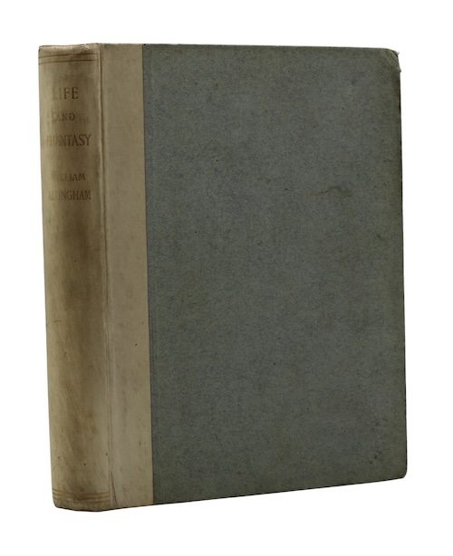 The second edition of the final published work of Irish poet William Allingham (1824-1889), written and issued during a period of ailing health shortly before his death the subsequent year. The collection of poetry is typical of Allingham's distinctive, whimsical verse; the contents include a short selection on 'Fairies', which harkens back to his earliest published work, Poems (1850), the source of the oft-quoted supernatural lyric 'The Faeries' famed for its appearance in Willy Wonka and the Chocolate Factory (1971).