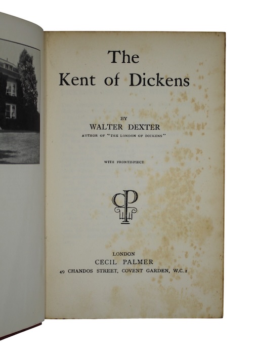 A presentation copy of the sole edition, in original blind-stamped boards, of a study on Dickensian Kent by Dickens enthusiast Walter Dexter, editor of The Dickensian, the Dickens Fellowship's triannual journal, from around 1925-1950.