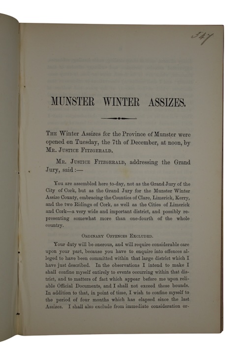 Crime in ireland. The winter assizes in ulster, munster, leister, and connaught, with an appendix....