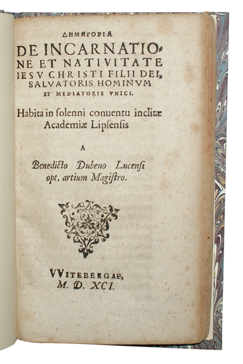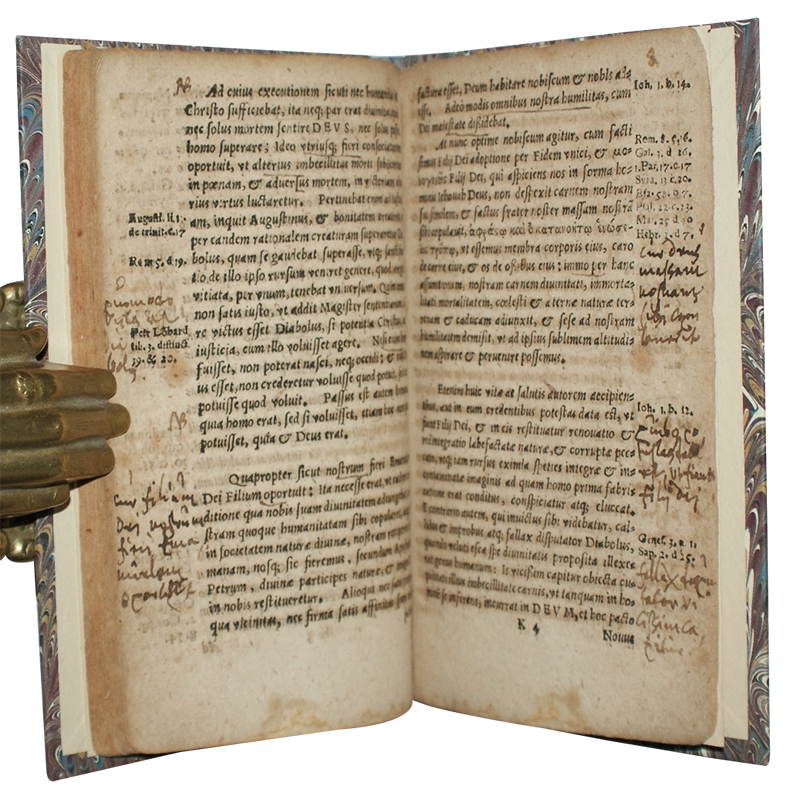One work in two parts, bound in two volumes. [94], [80]. Recent marbled boards. Some marginal loss to title, a little fraying to final signature. Closed tear to H2, some browning. Extensively annotated in Latin, in a contemporary or near-contemporary European hand. Not in Adams.