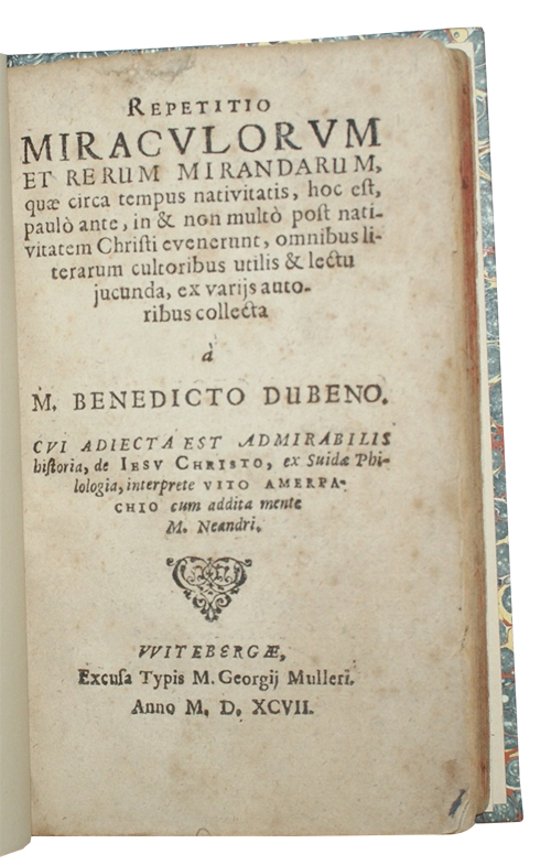Repetitio Miraculorum et Rerum Mirandarum, Quae Circa Tempus Nativitatis, Hoc Est, Paulo Ante, in & Non Multo Post Nativitarum Christi Evenerunt....